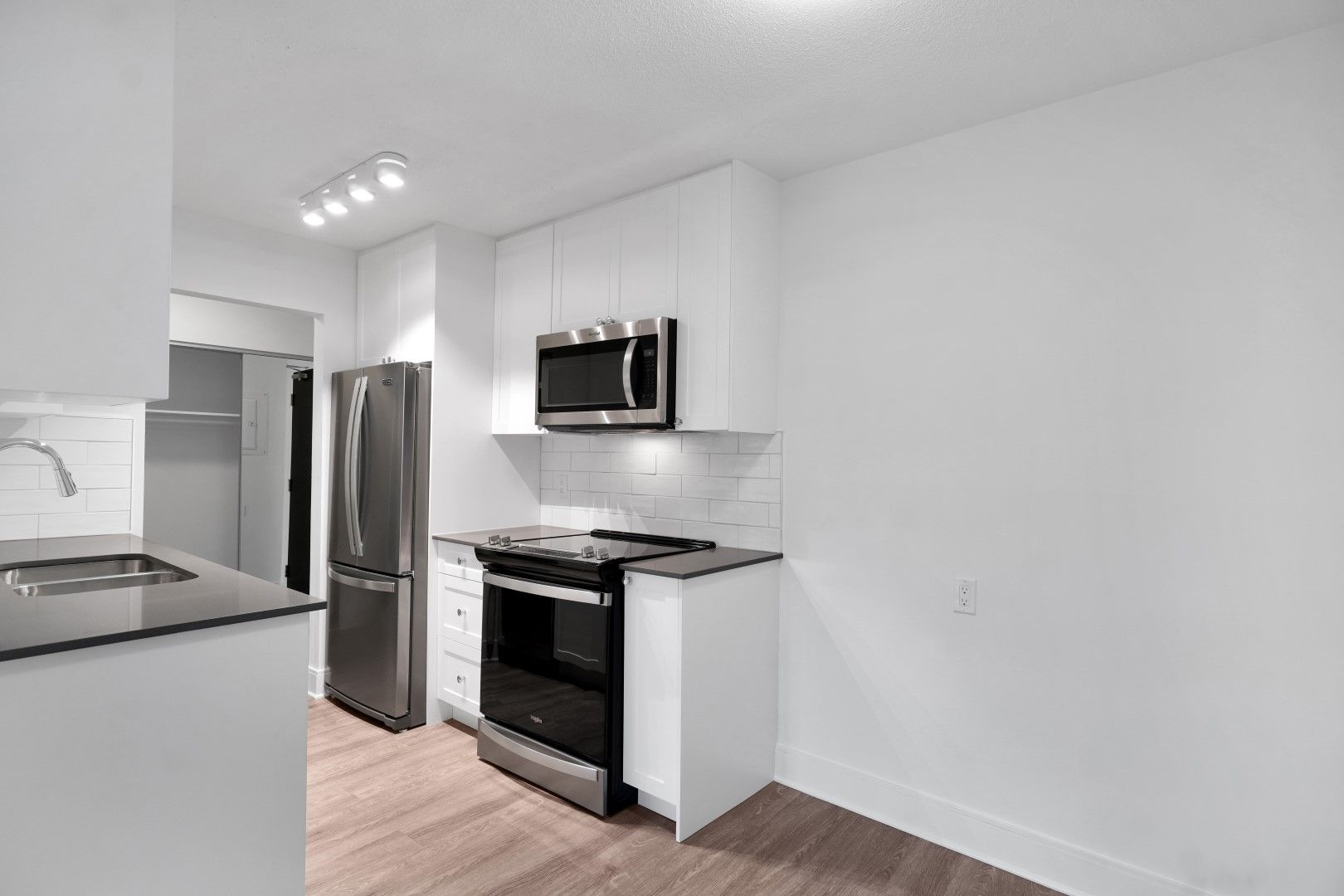 Newly renovated suites will include new vinyl flooring, fresh paint, roller blinds, new kitchen cabinets, quartz countertops with backsplashes, and stainless steel appliances.